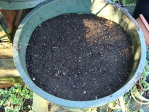 The finished compost is stored in the big green bins until spring, until I spread it around the garden. You can see from the picture on the left, how fine and light the compost is. (Hmmm, I think that “fine and light” is how other people describe pastry). I am really excited about putting this in the raspberries and the flower beds in the front – but it never seems to go as far as I would like.