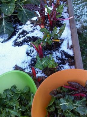 Last night there was a hail/snow storm and so the entire garden is covered with a layer of icy pellets. This morning I was BBMing (blackberry messaging) with a friend in Ontario who asked me “how do you garden in the snow?”. Inspired by his question, this is how I have spent my afternoon: