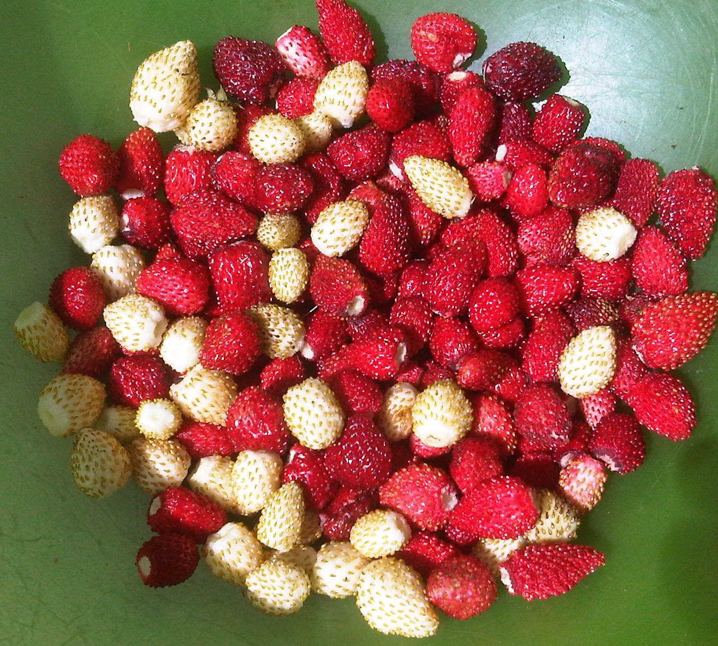 These miniature strawberry plants came to us from a garden on Gambier Island. We planted them in the back yard and within two years they had started creeping around the house and up the steps. Now the strawberries are making themselves at home in the front yard, and I have even started to pull some of the more brazen plants out.