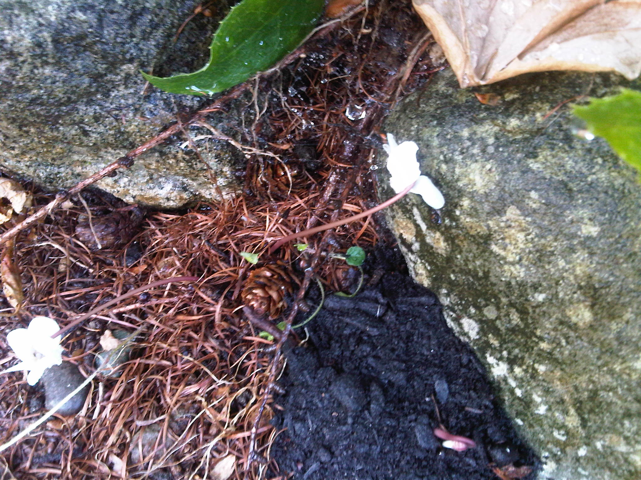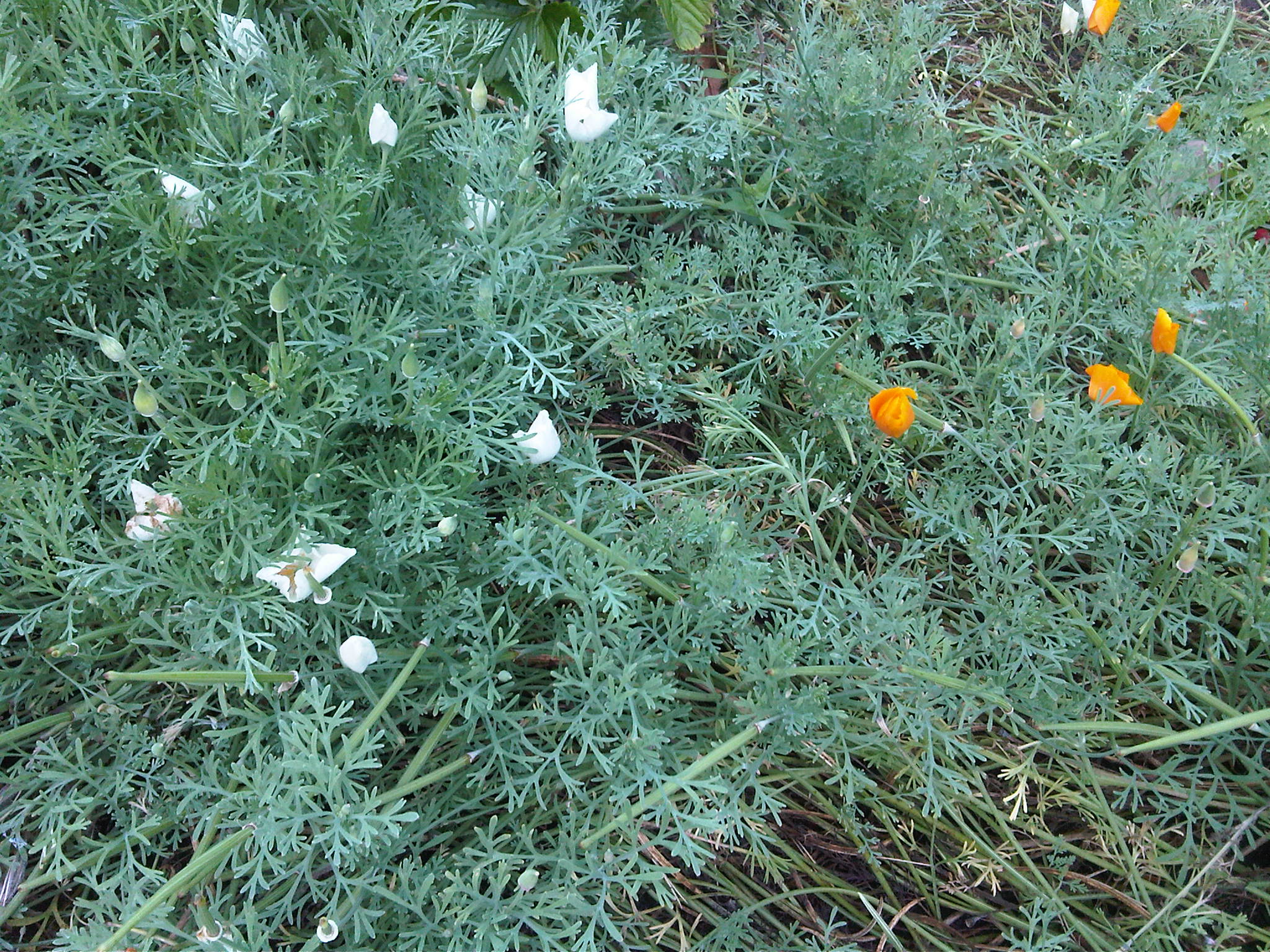 Albino plants. In a previous post I mentioned that I have albino strawberries and white California poppies that grow along side their pigmented sisters. Today I noticed two white cyclamen, which I have never seen before. I tried to take a photo of them, but like many white flowers photographed with a crappy cellphone camera, they seem to glow and none of the definition and details are visible. Sort of like UFO photos from the 70s…