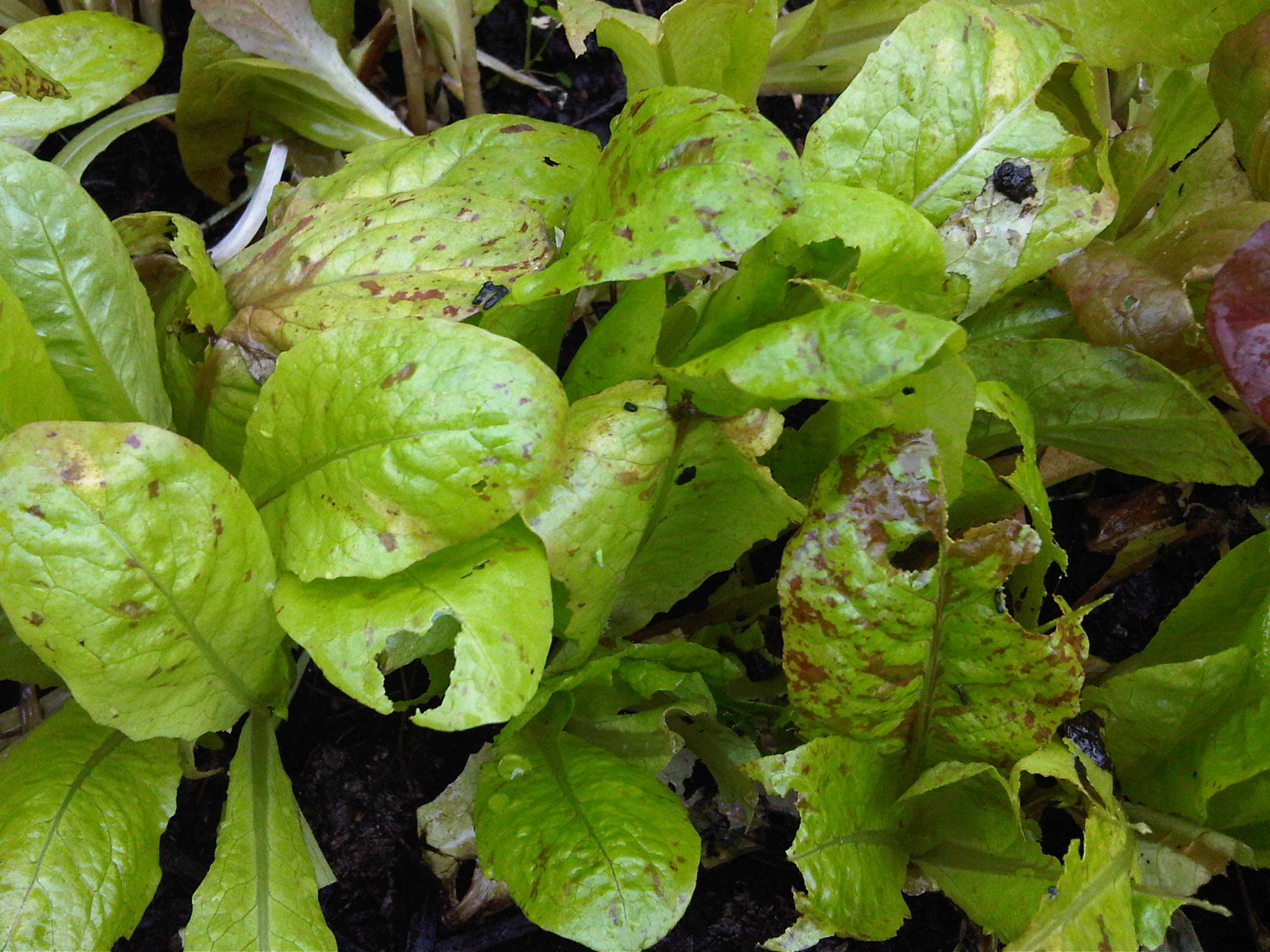 Biodome #1 has obvious signs of slug activity and the lettuce is “failing to thrive”. Still, there are at least a few salads there, if I manage to harvest the good lettuce before the slugs eat it all.