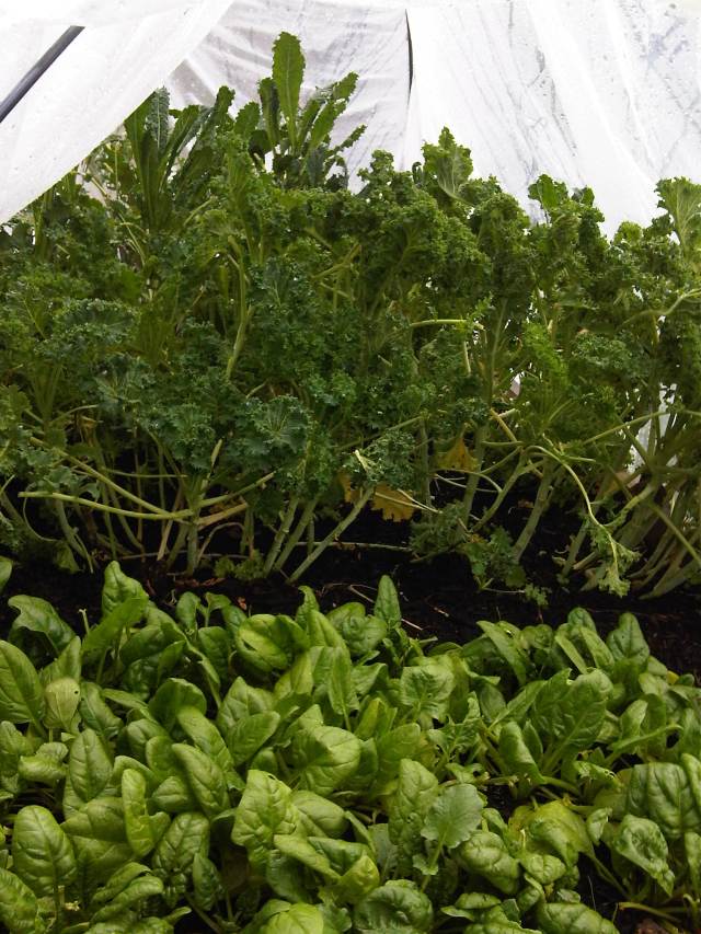 The slug biodomes were activated just over a week ago, and a quick inspection revealed that the plants in biodome #2 are all doing very well – the spinach is growing quite fast and the kale is thriving. I was especially happy to see that the kale had few aphids. The bottom leaves on each plant are turning yellow and falling off (see photo above), so I removed all the detritus.