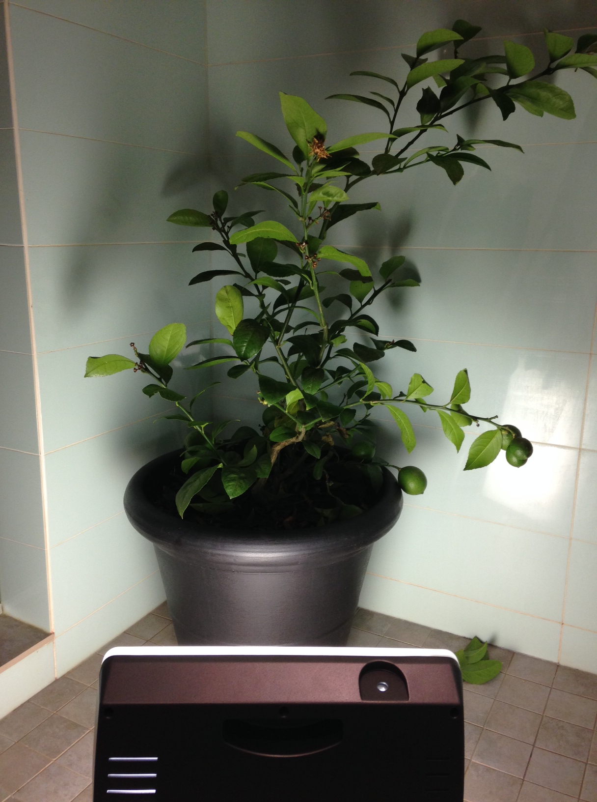 My lemon tree is hoping to survive the Vancouver winter by living in my shower and getting artificial light from my SAD lamp.