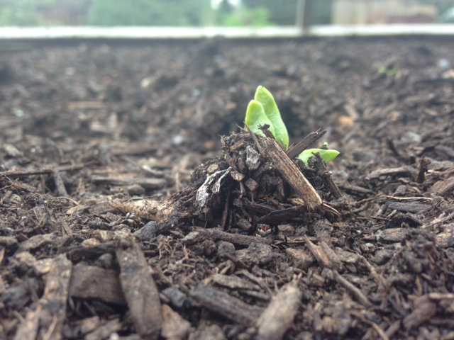 first favaSpring is my favorite season to spend in the garden. Every day this last week I’ve spent time removing dead foliage, weeding or just taking pictures of spring blossoms. The first fava beans and peas have started to push up through the soil; I took the picture above several days ago and by today more sprouts started to appear.