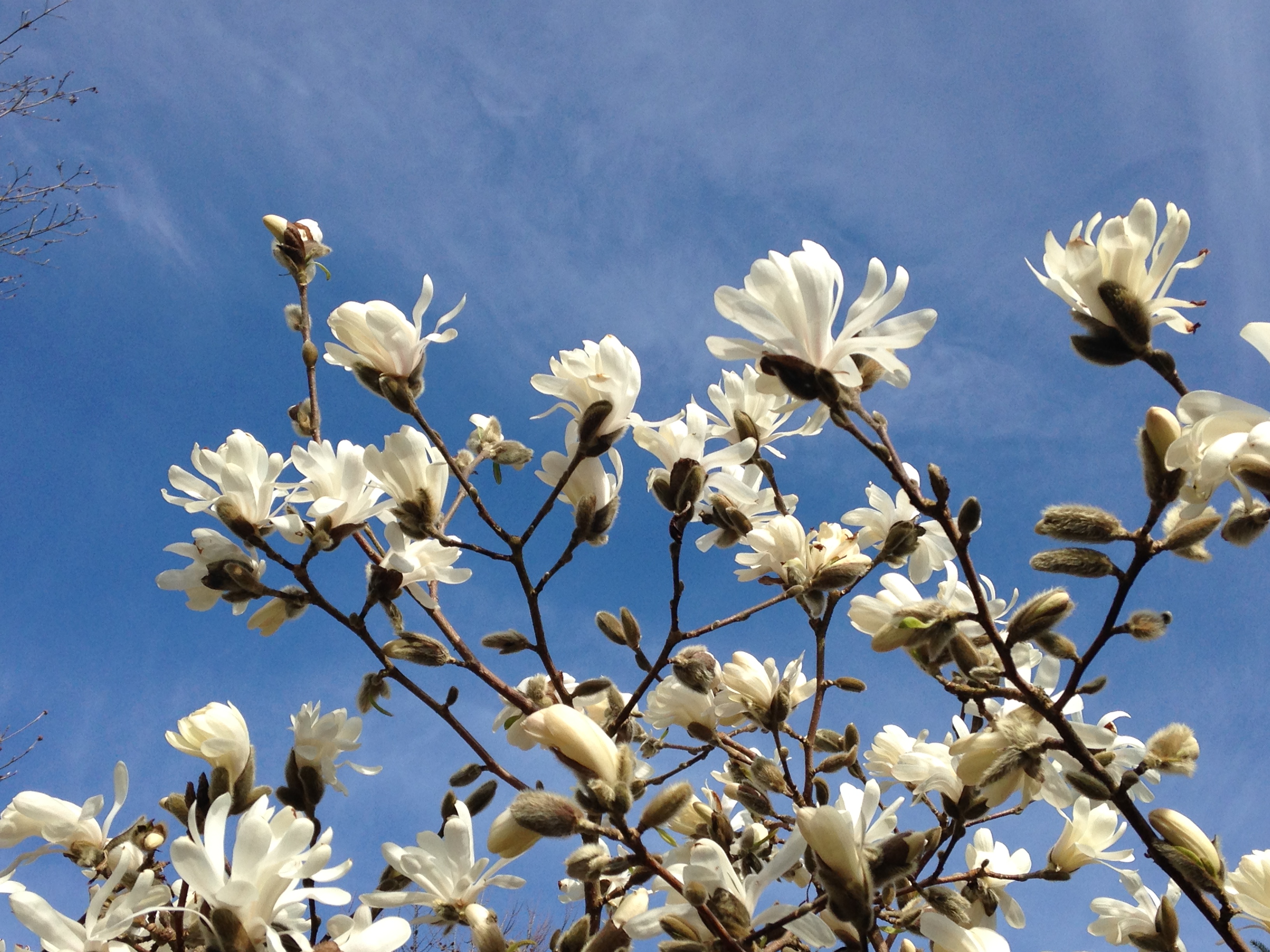 This was the kind of day it was today in Vancouver: sunny with high clouds and a bit of a chill. Pom-pom magnolias!