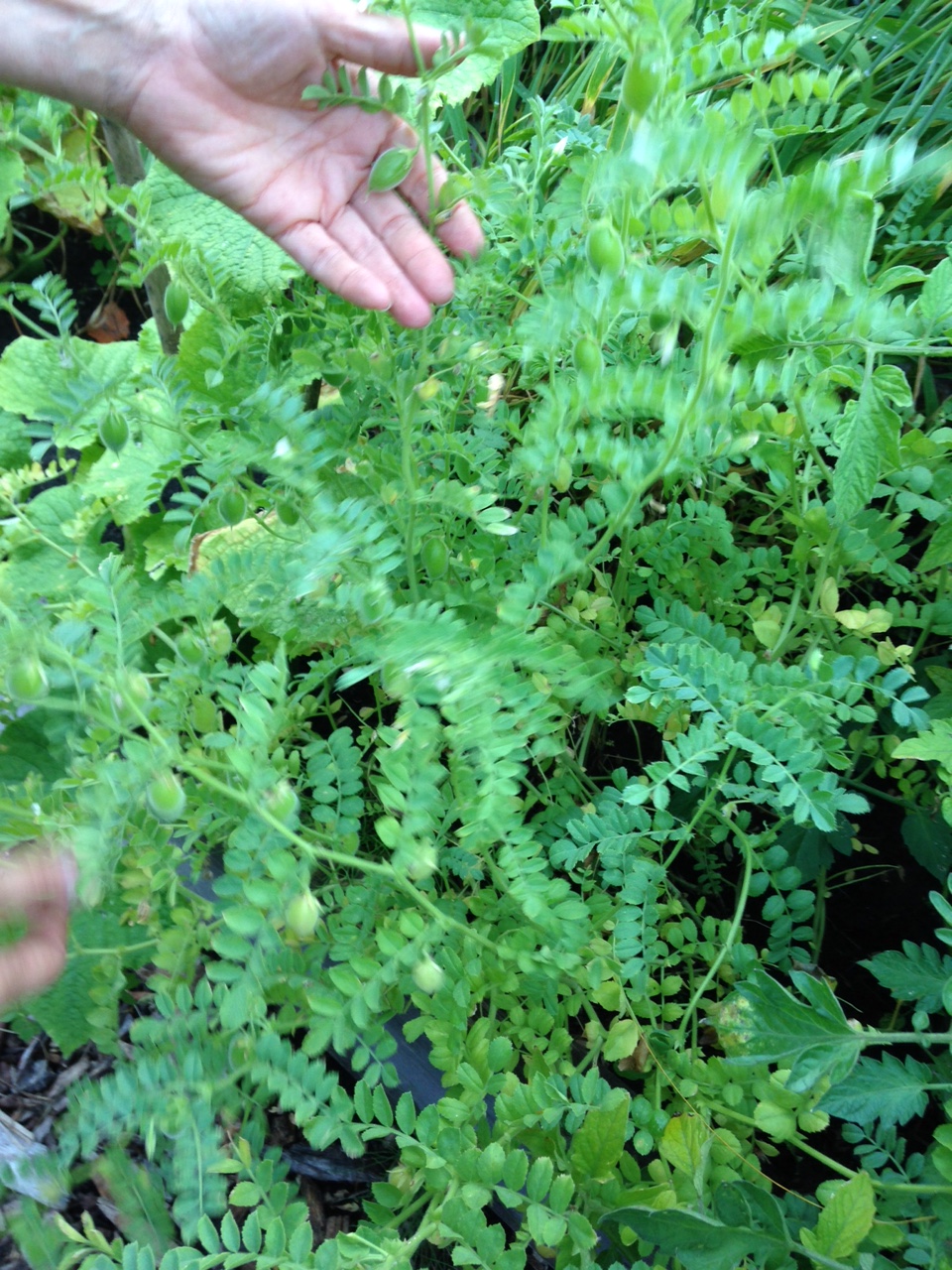 Seriously inspiring: chickpeas. I might try to grow some next year as well. The chickpeas grow in individual pods, unlike peas and beans.