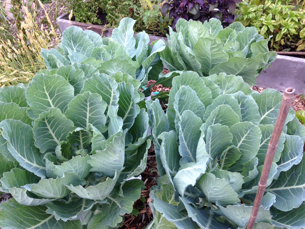 The aforementioned super-gigantic collards, enough to feed a family of eight…for about a month. You can use the leaves as taco shells if you are a raw foodie.