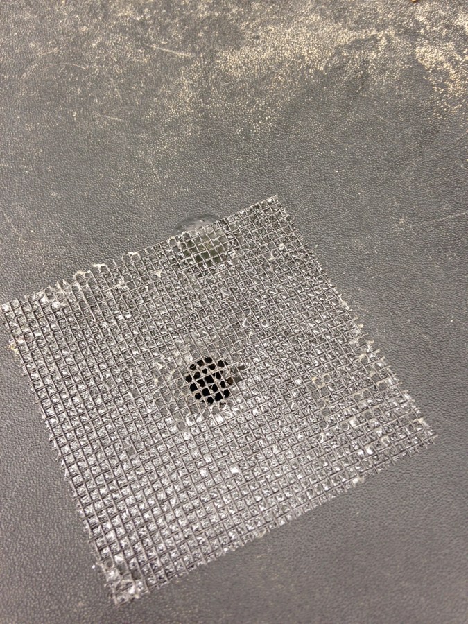 Close up: fibreglass screen repair tape on a water barrel